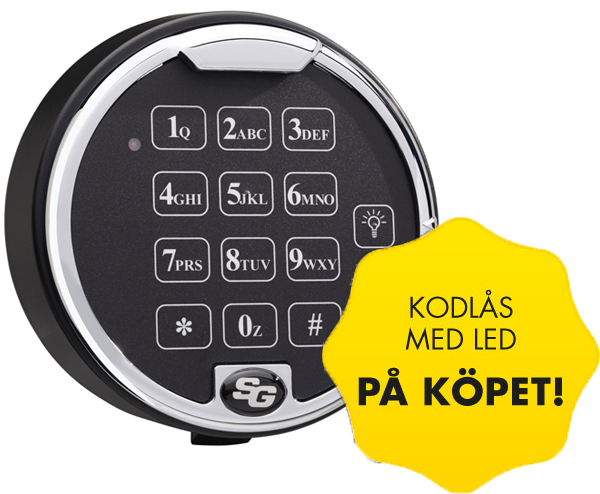 Tillbehör: Olika inrednings- och låsalternativ. Elektroniskt kodlås (ingår). Mer avancerat elektroniskt kodlås för upp till 9 unika koder. Tidsfördröjning. Händelseschema. Hållare för nyckelförteckning.
